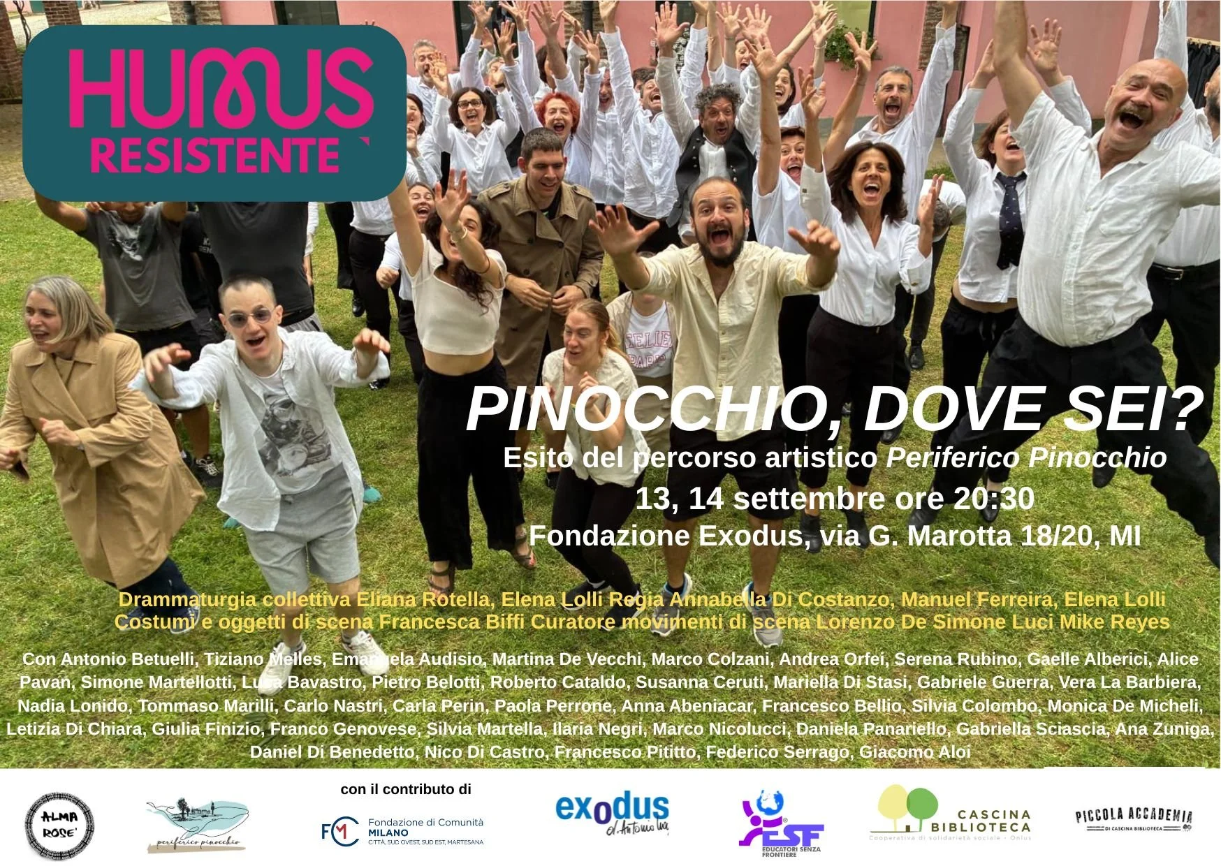 Pinocchio, dove sei? È lo spettacolo evento con cui Alma Rosé ha concluso il progetto Periferico Pinocchio, sostenuto da Fondazione Comunità, in collaborazione con Cascina Biblioteca, Educatori Senza Frontiere e Fondazione Exodus, che ha debuttato i giorni del 12, 14, 15 giugno 2025 presso Fondazione Exodus.