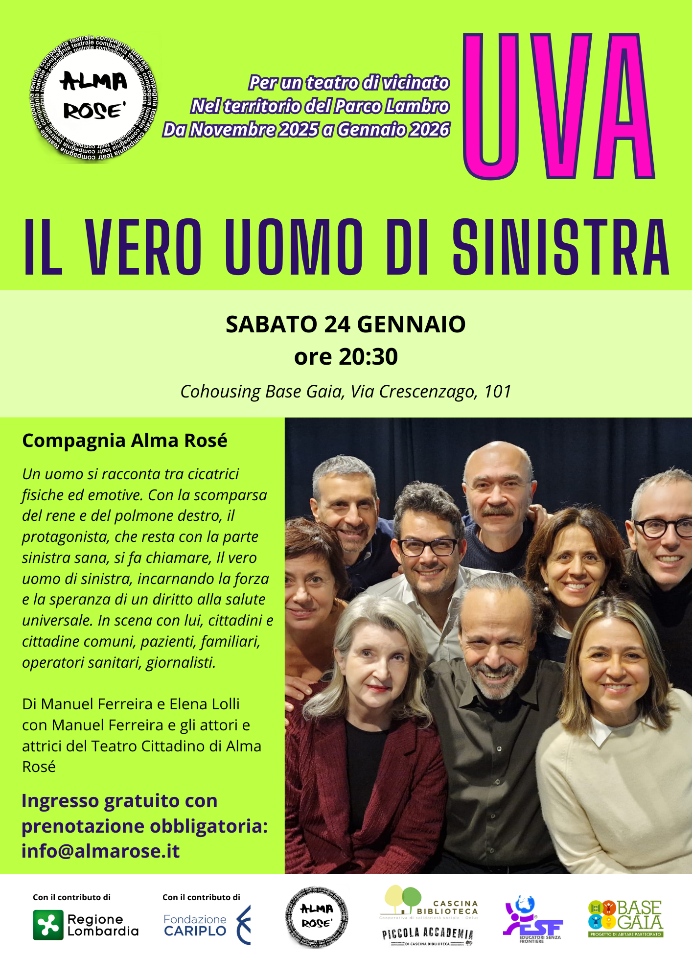 Con UVA, iniziativa sostenuta dal Bando Regionale 2025 per la promozione educativa e culturale, diamo continuità al nostro impegno in questo territorio e invitiamo il pubblico a cinque eventi culturali diffusi, in collaborazione con Cascina Biblioteca, Fondazione Exodus, Educatori senza Frontiere e Base Gaia.